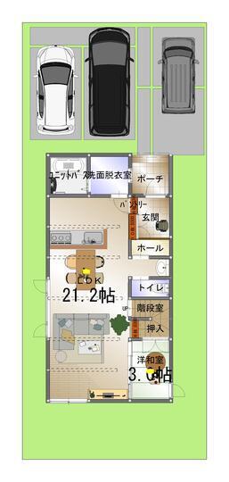 ※建築条件土地の情報内に掲載されている、建物プラン例は、土地購入者の設計プランの参考の一例であって、プランの採用可否は任意です。
