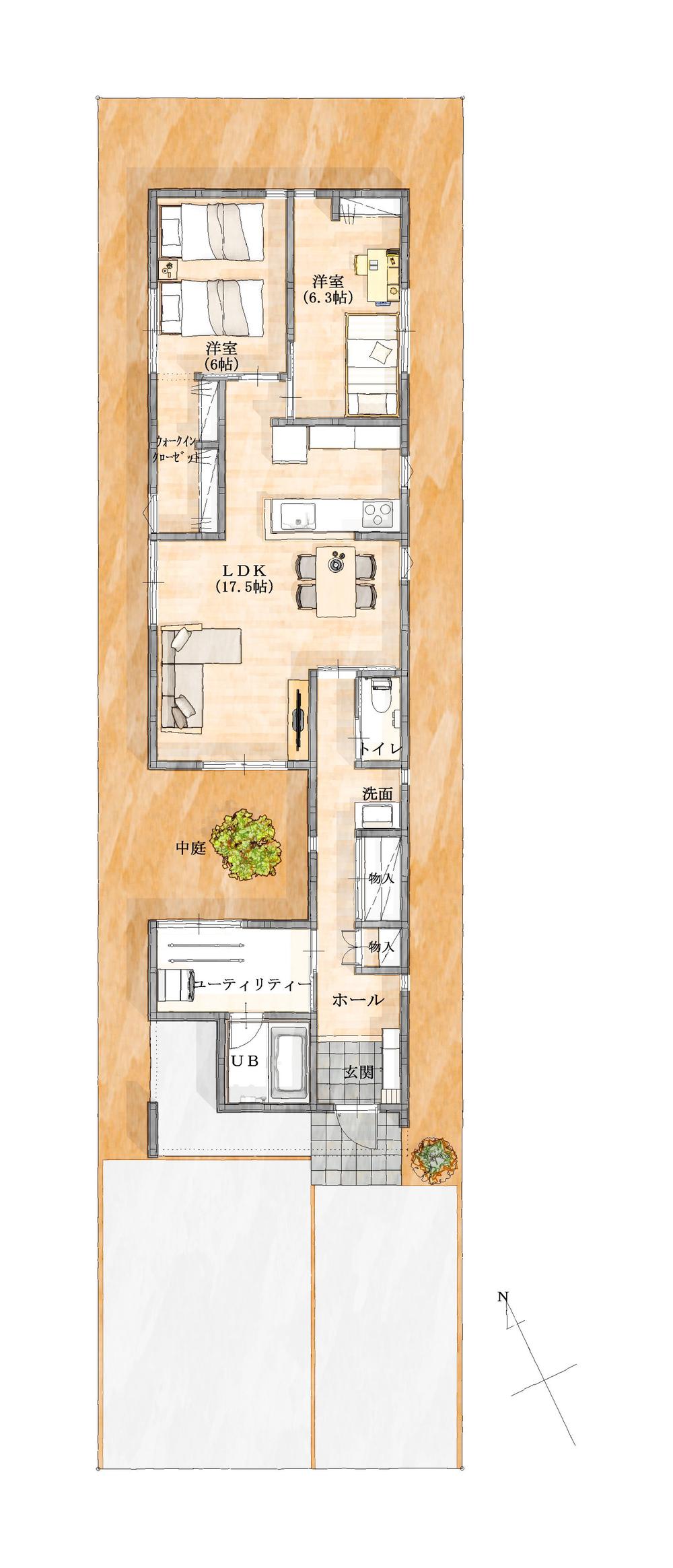 ※土地(建築条件なし)で「建物プラン例」が表記してある時、そのプラン例は特定の建築請負会社によるもので、当該建築請負会社以外で建てた場合、同様のものが同価格で建てられるとは限りません。また建築請負会社を特定するものではありません。
