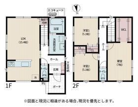 土地面積土地:181.90m2(1号棟)~182.07m2(2号棟) 建物:111.78m2(2号棟)〜115.88m2(1号棟)