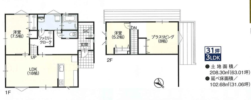 建物面積 | 102.68㎡(31.06坪) | 土地面積 | 208.3㎡(63.01坪)(登記) | ||