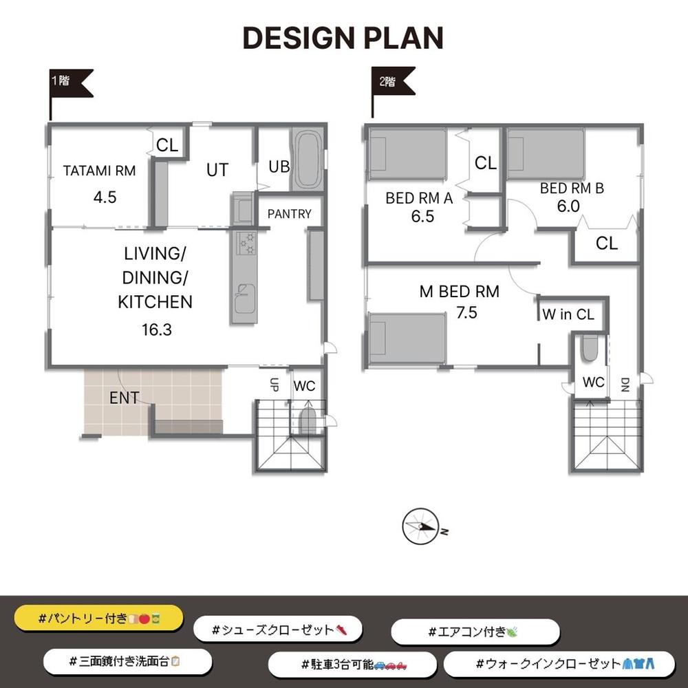 | 設備 | BELS/省エネ基準適合認定書あり / 地盤調査済 / 2沿線以上利用可 / 省エネ給湯器 / 市街地が近い / システムキッチン / 陽当り良好 / 全居室収納 / LDK15畳以上 / 前道6m以上 / 和室 / 整形地 / シャワー付洗面化粧台 / 対面式キッチン / トイレ2ヶ所 / 浴室1坪以上 / 2階建 / 複層ガラス / オートバス / 温水洗浄便座 / TVモニタ付インターホン / 節水型トイレ / 全居室フローリング / パントリー(食器・食品の収納庫) / ウォークインクローゼット / 全居室6畳以上 / 平坦地 / 可動間仕切り / 食器洗乾燥機 / オール電化 / 高機能トイレ | ||||