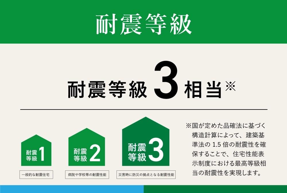 | 設備 | BELS/省エネ基準適合認定書あり / エコポイント対象住宅 / 省エネルギー対策 / 高気密高断熱住宅 / 地盤調査済 / 駐車3台以上可 / LDK18畳以上 / 省エネ給湯器 / 市街地が近い / システムキッチン / 浴室乾燥機 / 全居室収納 / 駅まで平坦 / 閑静な住宅地 / 前道6m以上 / 対面式キッチン / EV車充電設備 / バリアフリー / トイレ2ヶ所 / 浴室1坪以上 / 2階建 / 温水洗浄便座 / 吹抜け / TVモニタ付インターホン / 節水型トイレ / 全居室フローリング / パントリー(食器・食品の収納庫) / ウォークインクローゼット / 天井高2.5m以上 / 全居室6畳以上 / IHクッキングヒーター / リビング階段 / 全居室複層ガラスか複層サッシ / シューズインクローク / 平坦地 / 開発分譲地内 / 食器洗乾燥機 / オール電化 / スマートキー / 高機能トイレ | ||||
