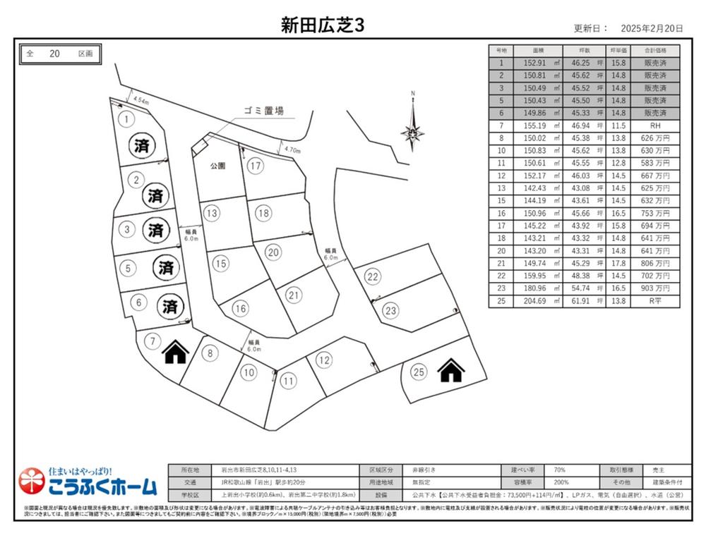 備考 | 景観法による規制有 / 担当者:笠松、設備:公営水道、本下水、個別LPG、建築確認番号:和建防第2025-7043号、駐車場:カースペース |