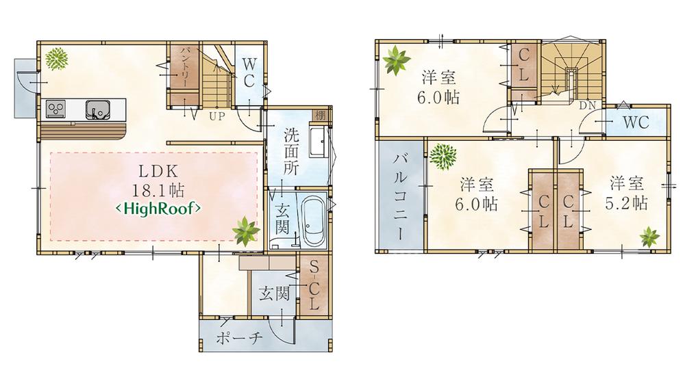 ※土地(建築条件なし)で「建物プラン例」が表記してある時、そのプラン例は特定の建築請負会社によるもので、当該建築請負会社以外で建てた場合、同様のものが同価格で建てられるとは限りません。また建築請負会社を特定するものではありません。
