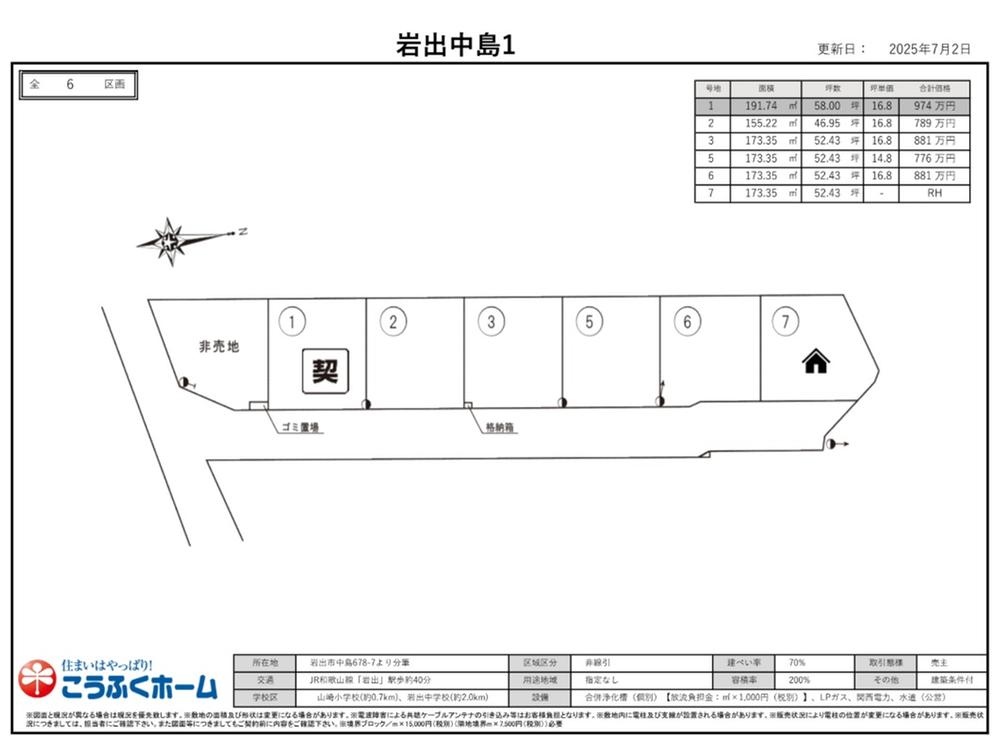 備考 | 景観法による規制有 / 担当者:笠松、設備:公営水道、個別浄化槽、建築確認番号:和建防第2025-7047号、駐車場:カースペース |