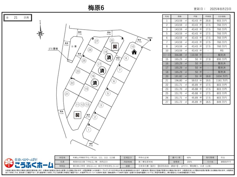 備考 | 景観法による規制有、法22条区域 / 担当者:笠松、設備:公営水道、個別浄化槽、建築確認番号:第総合25-8133号、駐車場:カースペース |