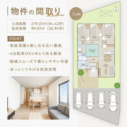 | 建物面積 | 89.07㎡ | 土地面積 | 279.07㎡ | ||