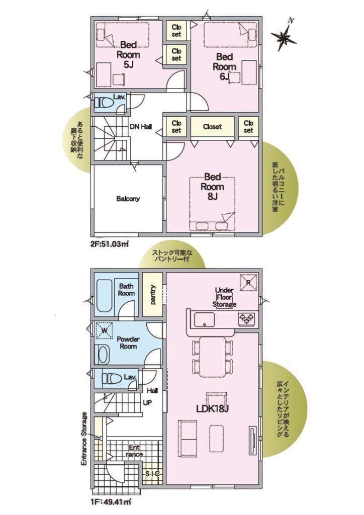 ※土地(建築条件なし)で「建物プラン例」が表記してある時、そのプラン例は特定の建築請負会社によるもので、当該建築請負会社以外で建てた場合、同様のものが同価格で建てられるとは限りません。また建築請負会社を特定するものではありません。