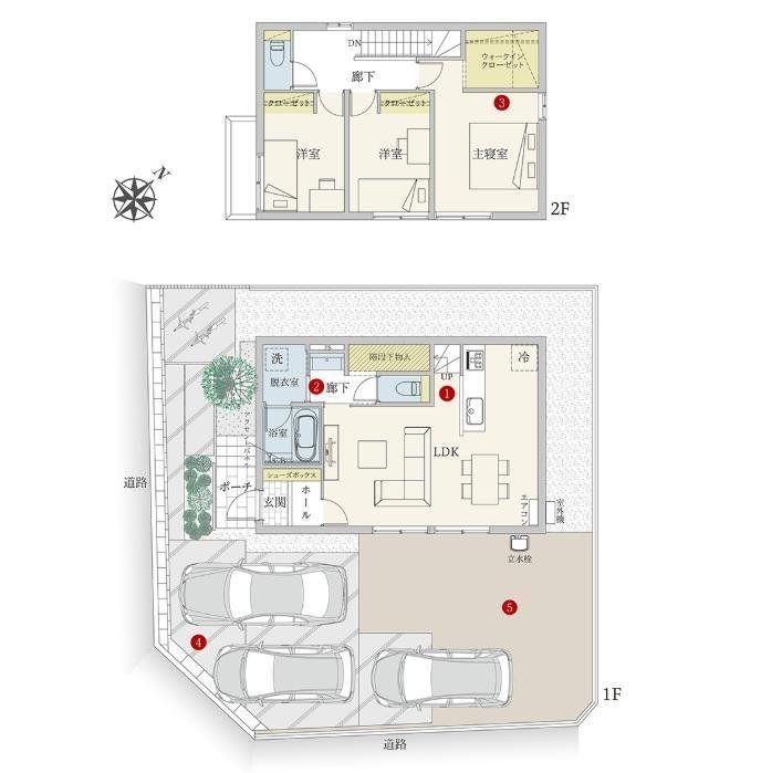 設備 | 長期優良住宅認定通知書 / 建設住宅性能評価書(新築時) / 太陽光発電システム / 駐車3台以上可 / 浴室乾燥機 / 陽当り良好 / 前道6m以上 / 角地 / 整形地 / EV車充電設備 / トイレ2ヶ所 / 2階建 / 複層ガラス / TVモニタ付インターホン / ウォークインクローゼット / リビング階段 / 都市ガス / 食器洗乾燥機 / 浄水器 | ||||