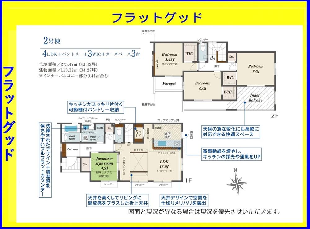 | 建物面積 | 113.32㎡(34.27坪)(登記) | 土地面積 | 275.47㎡(83.32坪)(登記) | ||