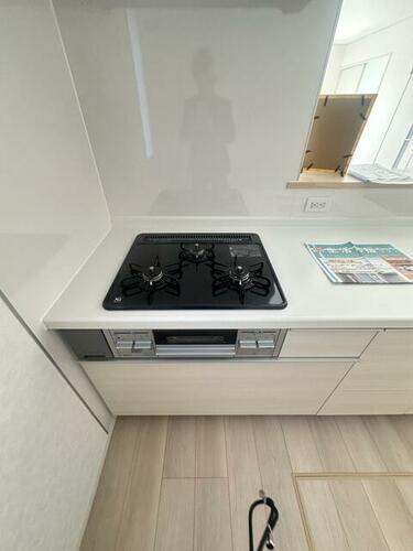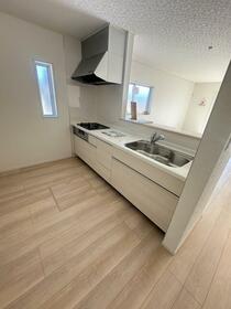 | 設備 | 給湯・バルコニー・収納スペース・追焚機能・プロパンガス・浴室乾燥機・Wクロゼット・シャンプードレッサー・ウォシュレット・システムキッチン・カウンターキッチン・モニタ付インターホン・クロゼット・トイレ2ヶ所・床下収納・複層ガラス・電気・上水道・下水道・側溝・省エネ給湯器 | ||||