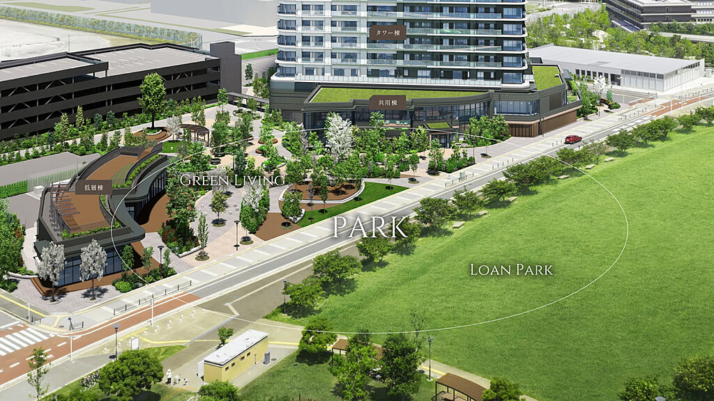 緑に寄り添い、街に咲く。花をモチーフにした外観、公園と一体となるランドスケープ、四季を映す植栽計画。豊かな自然とつながる、心地よい日常を叶える舞台がここにあります。