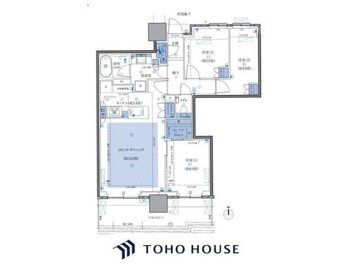 | 専有面積 | 73.81㎡ | バルコニー面積 | 12.55㎡ | ||