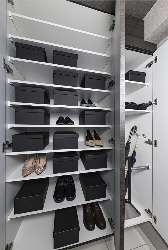 日々繰り返される営みにおいて主要な役割を果たすエントランスホール。その存在意義をあらためて見つめ直し、ゆとりを感じられる広さを確保するとともに、重厚で趣ある質感を備えたタイル貼りや空間の格調を高める折上天井などを採用。