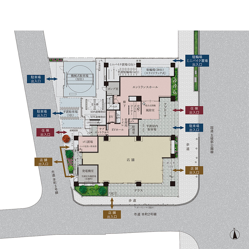 | 共有施設 | ■駐輪場/敷地内26台・平置式6台[月額使用料:400円]・スライド式20台[月額使用料:200円]■駐車場/敷地内36台・機械式立体駐車場32台普通車12台[月額使用料:16,000円]/ハイルーフ車20台[月額使用料:18,000円]・平置式駐車場4台[月額使用料14,000円~28,000円]■ミニバイク置場/敷地内2台[月額使用料:1,000円] | ||||