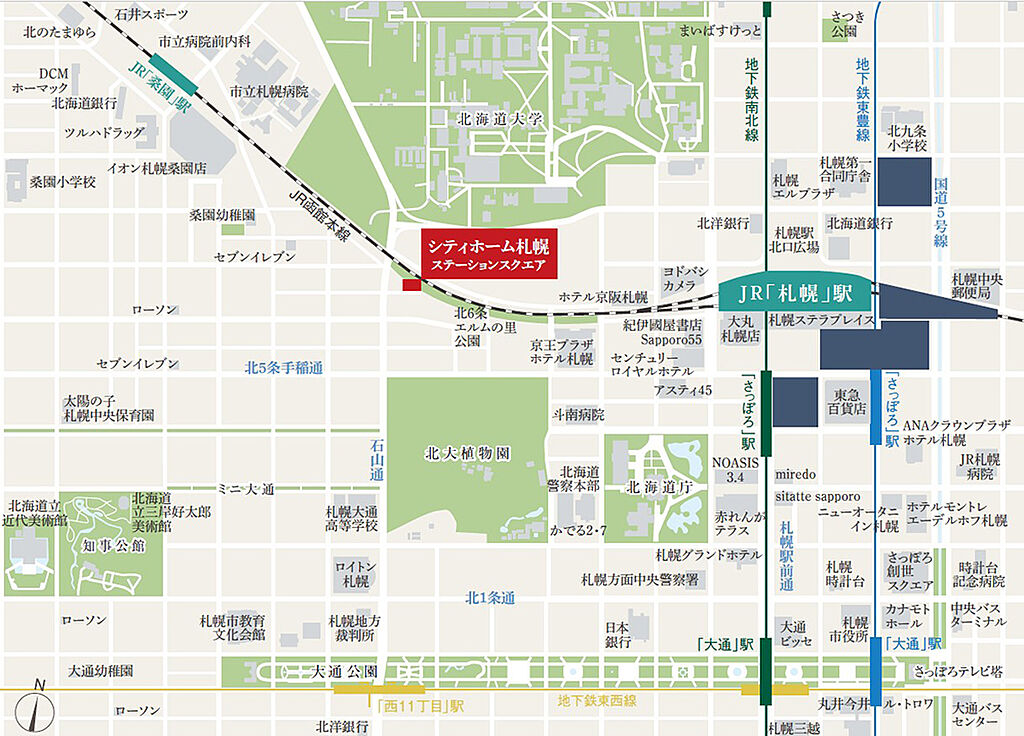 JR函館本線「札幌」駅 徒歩12分 札幌市営南北線「さっぽろ」駅 徒歩14分 札幌市営東西線「西11丁目」駅 徒歩12分 | ||||