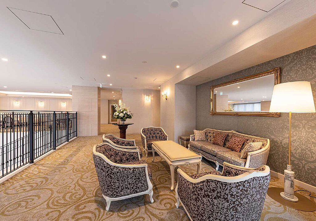 「旧 宝塚ホテル」の気品に満ちた佇まいを継承したThe North[北棟]のエントランスホールには、往時の記憶をつなぐデザインを纏った照明や家具などを配置しました。