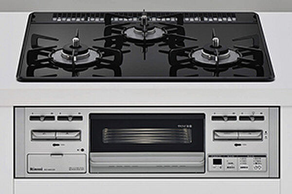 調理油の過熱や消し忘れを感知する安全機能や設定温度のキープ・自動炊飯が可能な便利機能、さらに片面焼き水なしグリルも搭載した高機能ガスコンロ。フラットな天板は汚れが付きにくく、お手入れも簡単です。※参考写真