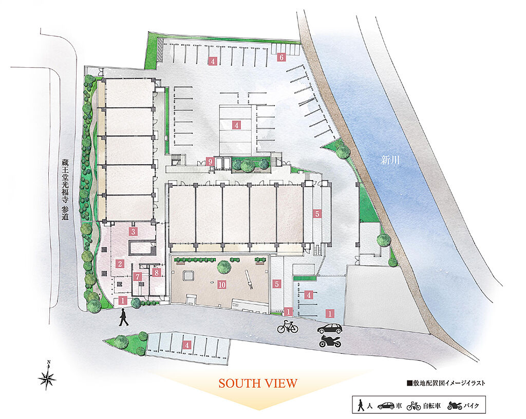 | 共有施設 | ■駐車場:50台(平面駐車場37台 ※来客用2台・サービス用駐車場1台含む。機械式駐車場13台 月額利用料:8,000円~14,500円)■バイク置場:6台(月額使用料:3,000円)■自転車置場:166台(2段式 上段昇降ラック式:56台・下段スライド式:64台・下段スライド式3人乗対応31台・スライド式15台 月額使用料:100円~600円) | ||||