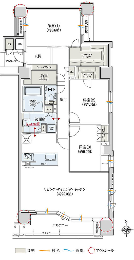 | 専有面積 | 75.57㎡~108.03㎡(トランクルーム面積含む) | バルコニー面積 | 7.82㎡~9.52㎡ | ||