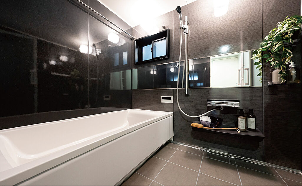 モダンな快適空間で、ゆったり癒しのバスタイムを。落ち着いてリラックスできるモダンな浴室には、日々の癒しをサポートするこだわりの機能が満載。保湿性・耐久性にすぐれた材質にこだわり、常に清潔に保てるよう、お手入れのしやすさにも配慮しました。