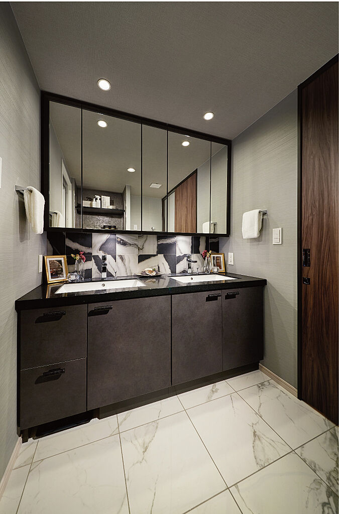 デザインと機能美の融合を大切にした、美意識が薫るインテリア。緑豊かなこの地の空気感とともに住空間へ還元。素材や色彩、照明など、一つひとつのエッセンスにこだわって表現している。