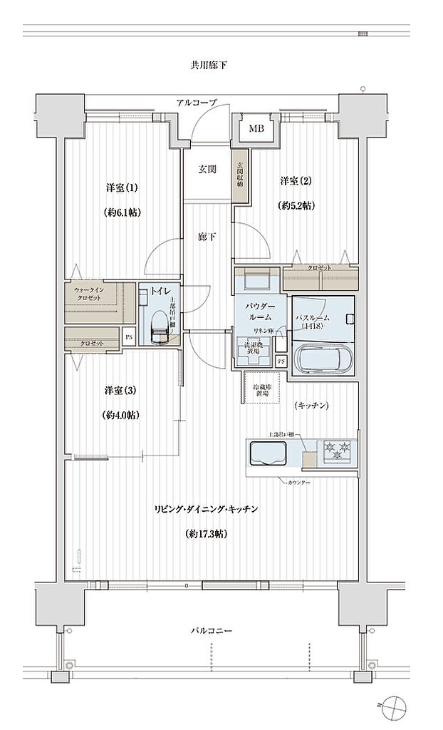 | 専有面積 | 78.27㎡ | バルコニー面積 | 14.88㎡ | ||