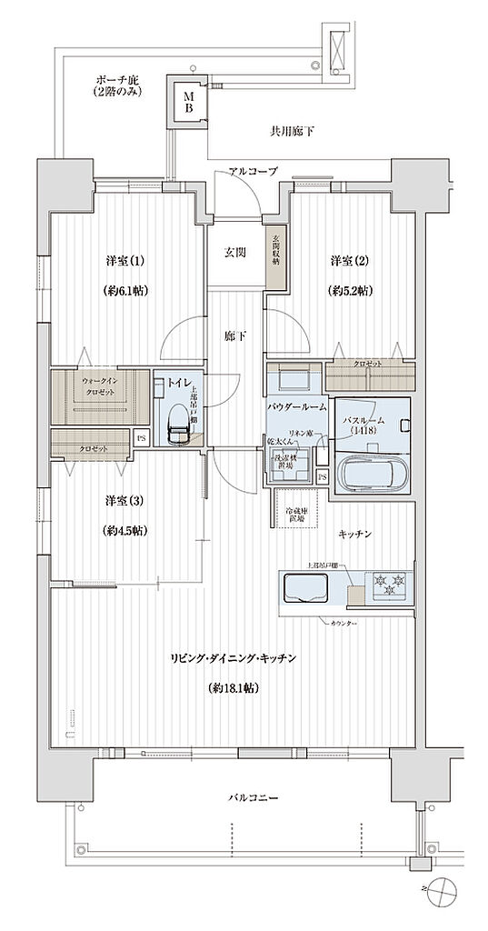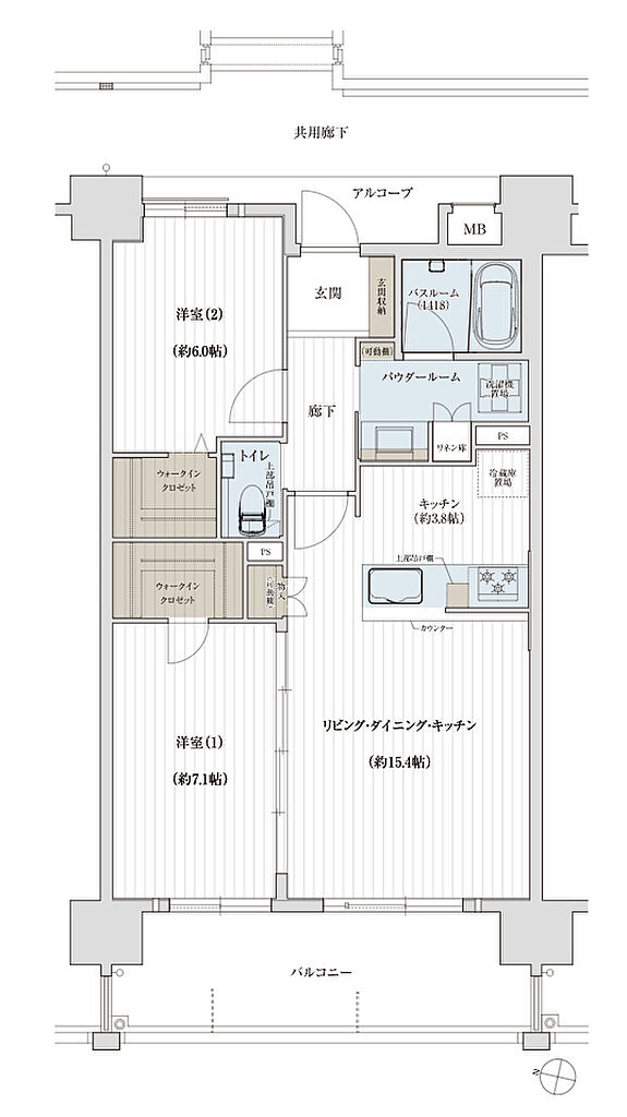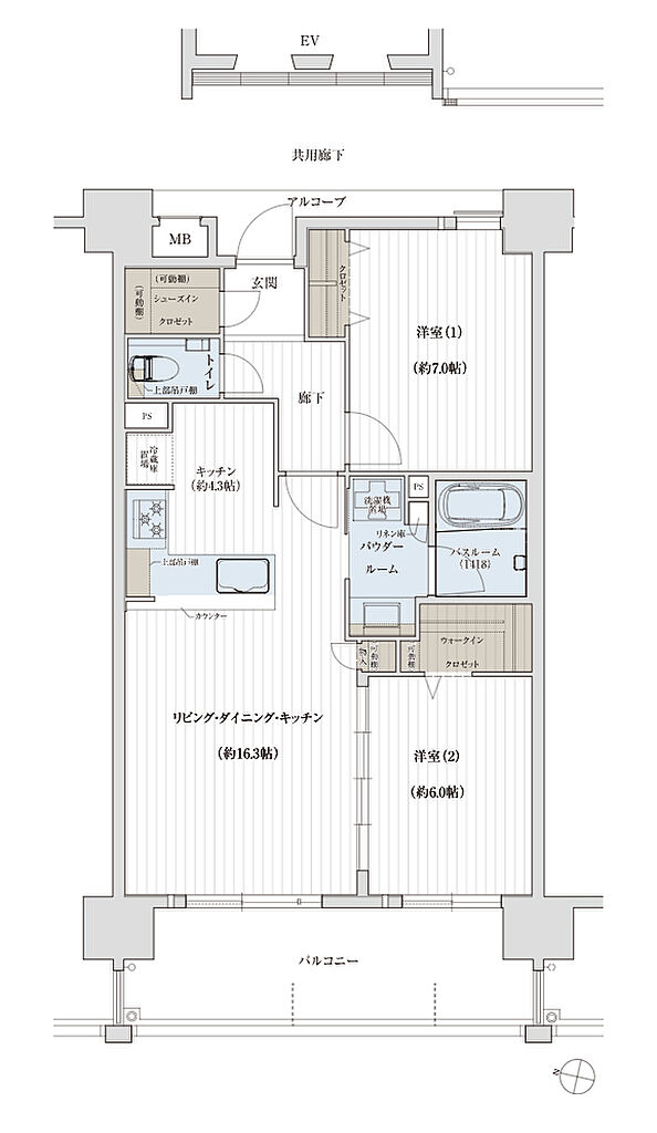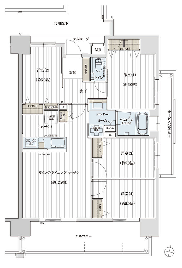 | その他面積 | ■アルコーブ面積/3.02㎡ ■サービスバルコニー面積/5.95㎡ | ||||