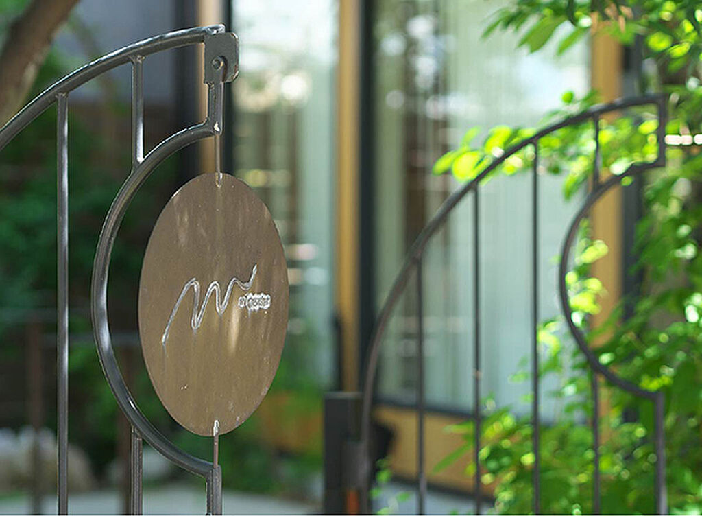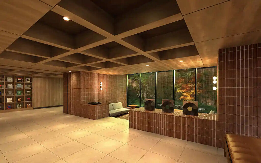 風除室からエントランスに続く壁面には、経年変化を愉しみながら愛着が湧き、工芸的な感覚を呼び起こす金属素材を採用。その先に広がるエントランスホールは、気品ある表情で住まう方と訪れる方を迎え入れます。