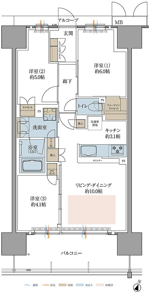 | 専有面積 | 61.95㎡~78.22㎡ | バルコニー面積 | 11.20㎡~14.70㎡ | ||