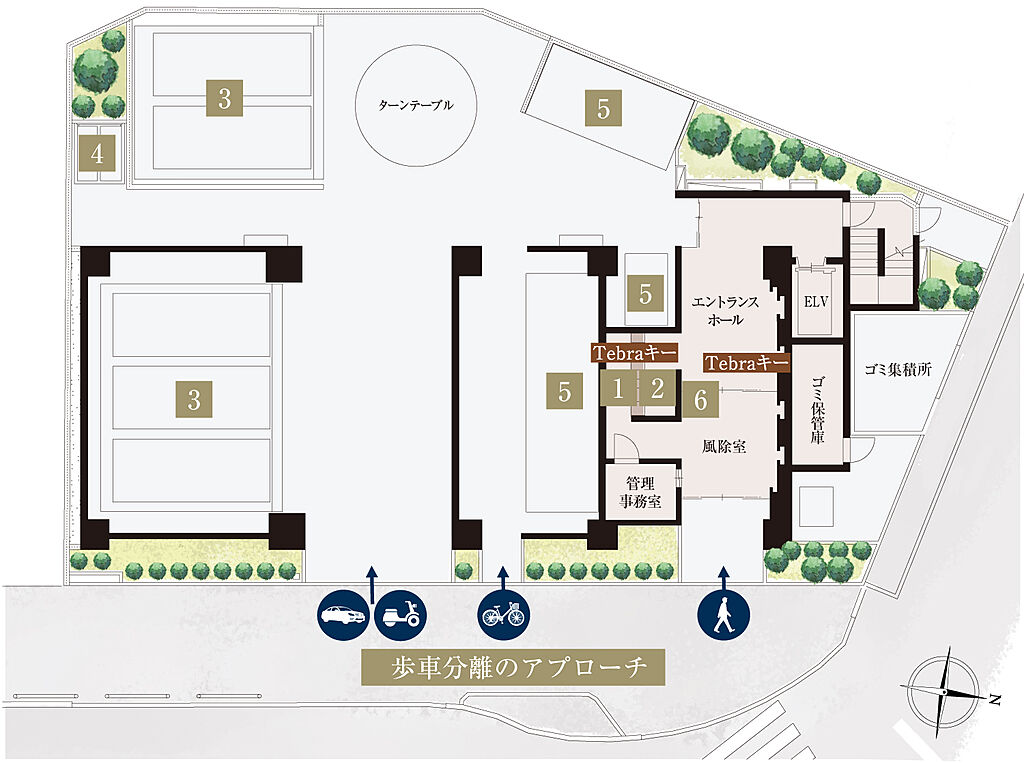 共有施設 | ■駐車場:敷地内機械式駐車場12台 月額使用料:9,500円~12,500円■ミニバイク置場:敷地内2台 月額使用料:2,000円■自転車置場:敷地内76台[内訳:上段30台、下段スライド式46台:内3人乗対応16台] 月額使用料:100円~500円 | ||||