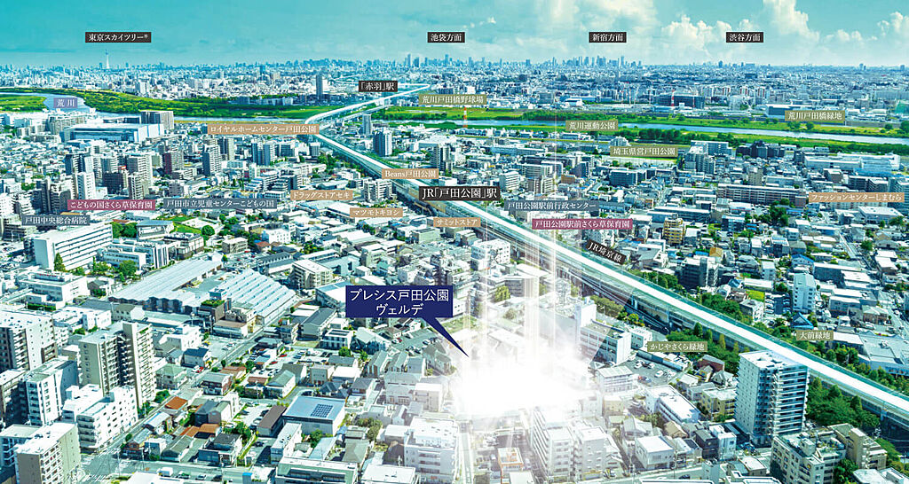 【売主】 一建設株式会社 国土交通大臣(10)第3284号 (公社)東京都宅地建物取引業協会 (公社)全国宅地建物取引業保証協会 (公社)首都圏不動産公正取引協議会加盟 (一社)全国住宅産業協会会員 〒177-0041 東京都練馬区石神井町2-26-11 【販売代理】 株式会社デバインコーポレーション 東京都知事(5)第82119号 (公社)東京都宅地建物取引業協会 (公社)首都圏不動産公正取引協議会加盟 (一社)全国住宅産業協会会員 〒105-0011 東京都港区芝公園二丁目6番15号 -------------------- 【TOP画像】 ※1.掲載の完成予想CGは図面を基に描き起こしたものに、眺望は現地8階相当の地点より南東方向を撮影(2023年9月)した写真を合成(一部CG処理)したもので、実際とは異なります。また、掲載の花火イメージは戸田公園花火大会の花火イメージをCG加工したもので、実際の見え方とは異なります。打ち上げ場所や開催は予告なく変更される場合がございます。敷地の植栽の樹種、大きさについては未確定となっており、竣工時には、完成予想CG程度には成長致しません。植栽は特定の季節の状況を示すものではありません。建物周辺のフェンスは白線で表現しております。 | ||||