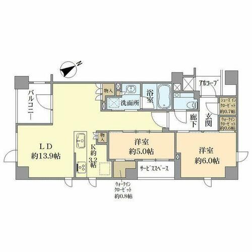 | 専有面積 | 63.24㎡ | バルコニー面積 | 5.00㎡ | ||