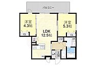 バス・トイレ別フローリングオートロック間取り図
