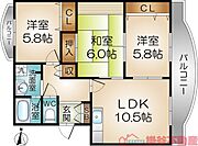 バス・トイレ別フローリングオートロック間取り図