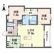 フローリングコンロ2口以上駐輪場あり間取り図