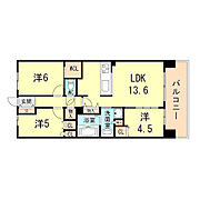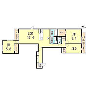 バス・トイレ別フローリングオートロック間取り図