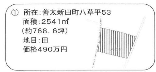 | 備考 | ・青地・愛西市善太新田町八草平53 490万円 2541㎡(約768.6坪) 地目:田 西側接道 も販売中です。・農業復興地域内の為、一般の方は原則、購入及び建築が出来ません。農地以外の目的で購入する場合、除外申請及び農地転用が必要となります。・仲介手数料:330,000円 / 条件等:現況渡し | ||||