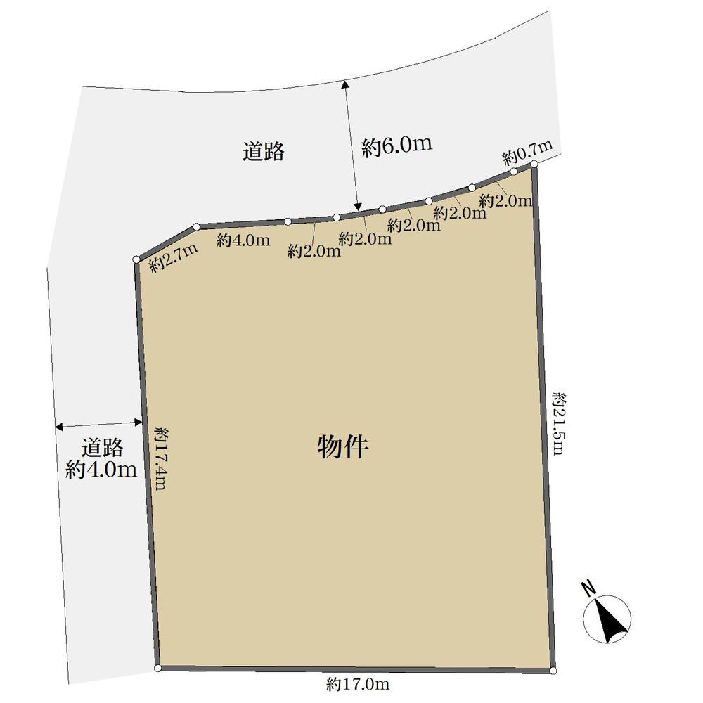 建ぺい率・容積率 | 60%・100% | 私道負担・道路 | 無、北東6m幅(接道幅17.4m)、北西4m幅(接道幅17.4m) | ||