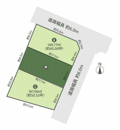 | 接道状況 | 北東 6.0m 公道 接面15.6m南東 6.0m 公道 接面6.4m | ||||