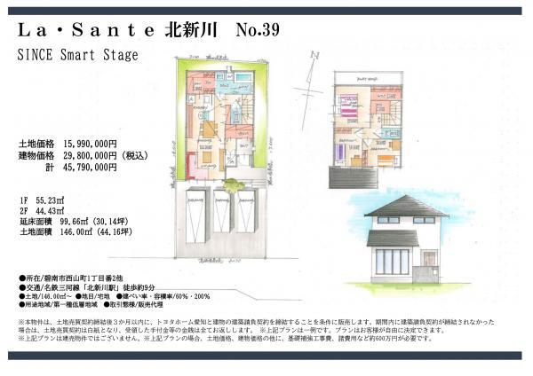 | 備考 | 設備:ガス:個別LPG 水道:公営水道 汚水:公共下水 雑排水:公共下水、開発面積:6810.15㎡、※碧南市景観条例、農地法(38~43号地) ※水道分担金:99000円(税込20ミリ) ※街づくりガイドライン有り ※【36~43号地】接道が建築基準法第42条2項道路に該当し、セットバック部分を碧南市へ帰属済 | ||||