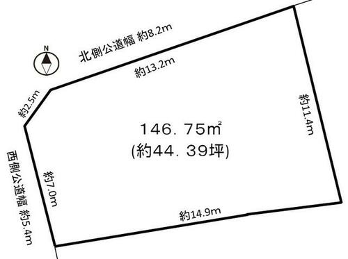 | 接道状況 | 北 8.2m 公道 接面13.2m西 5.4m 公道 接面7.0m | ||||