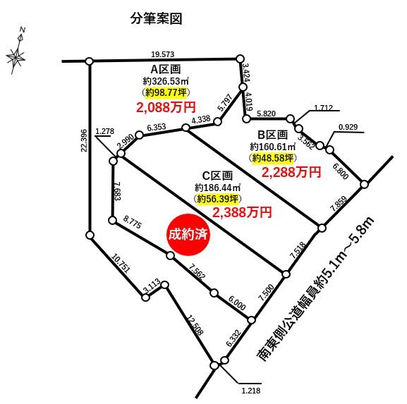 | その他制限事項 | ※既存宅地要件有り ※造成工事は売主の計画にて施工を行います(フェンスは付きませ ん)。現地の高低差により造成内容に変更が生じることを予めご承知 おきください。 ※上下水道、ガス管の引込みは買主様のご負担となります。 ※分筆前のため面積に相違がある場合は現況優先です。 ※司法書士は売主指定です。 | ||||