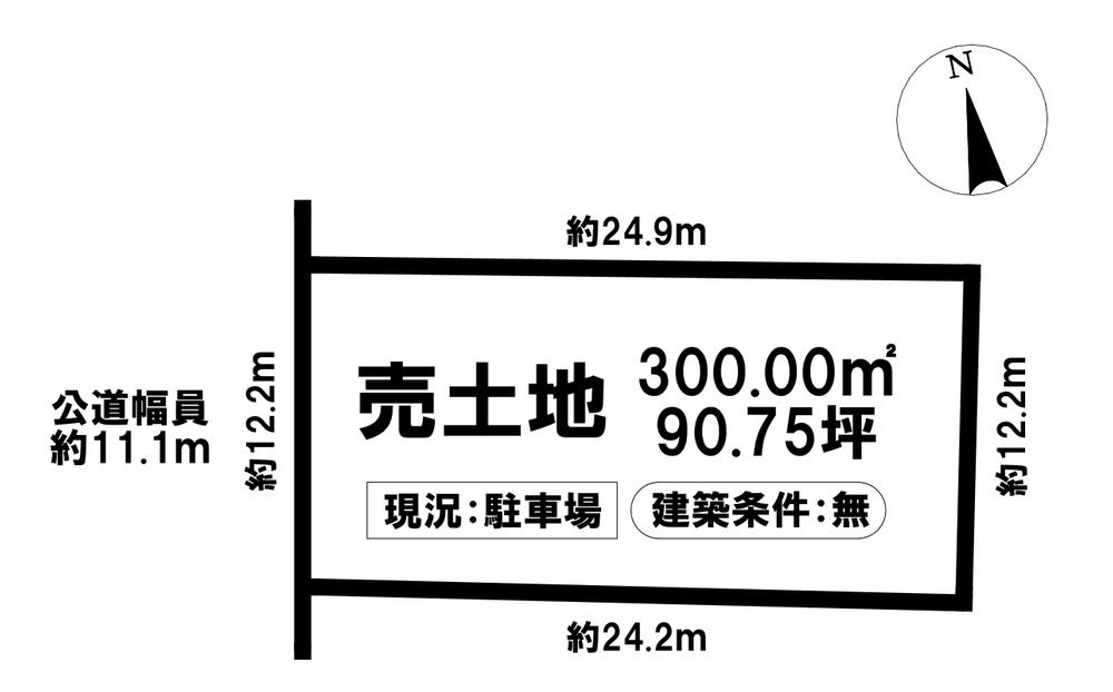 | 建ぺい率・容積率 | 建ペい率:30%、容積率:100% | 私道負担・道路 | 道路幅:11.1m、アスファルト舗装、西側(公道)幅 約11.1m 間口 約12.25m | ||