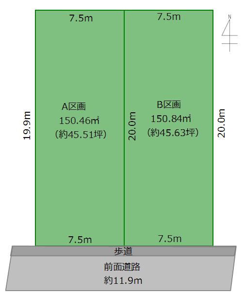 | 建ぺい率・容積率 | 建ペい率:40%、容積率:80% | 私道負担・道路 | 道路幅:11.9m、アスファルト舗装 | ||