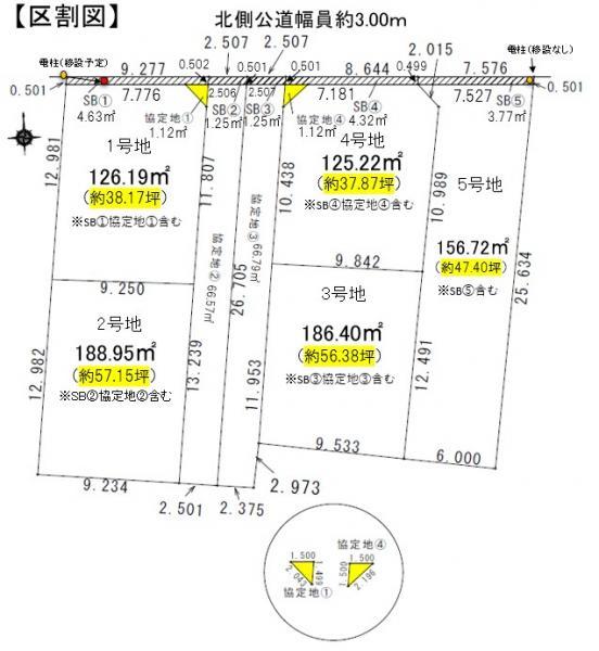| 建ぺい率・容積率 | 建ぺい率・容積率:60%・160% | 私道負担・道路 | 道路幅:3m、接道1:一方 公道 北 接面2.5m 幅員3m/接道2:一方 公道 北 接面9.2m 幅員3m/接道3:一方 公道 北 接面8.6m 幅員3m/接道4:一方 公道 北 接面7.5m 幅員3m/セットバ | ||