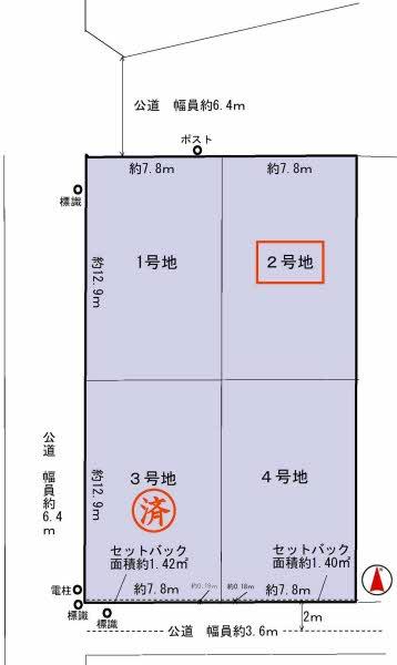 | 建ぺい率・容積率 | 60%・200% | 私道負担・道路 | 無、北6.4m幅(接道幅7.8m) | ||