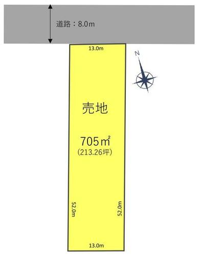 接道状況 | 北 8.0m 公道 接面13.0m | ||||