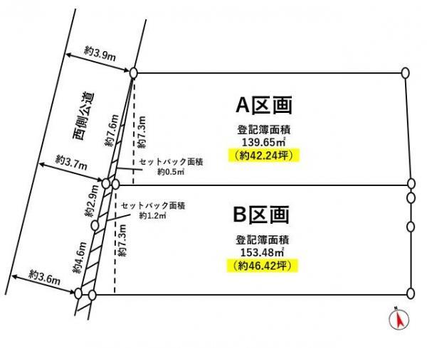 | 建ぺい率・容積率 | 建ぺい率・容積率:60%・200% | 私道負担・道路 | 道路幅:3.6m~3.7m、接道1:一方 公道 西 幅員3.7m/私道無 | ||
