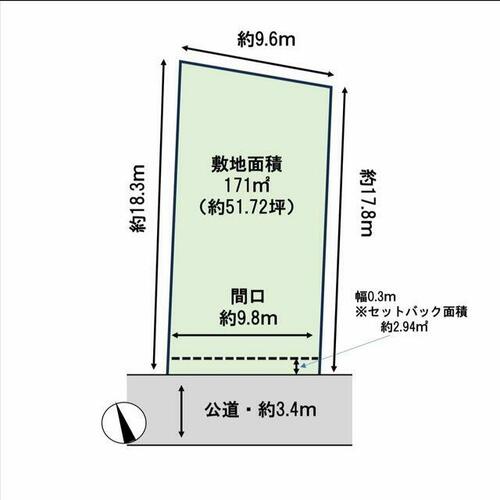 | 接道状況 | 南 3.4m 公道 接面9.8m | ||||